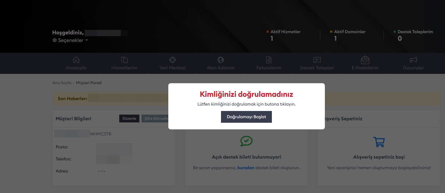 WTR Kimlik Doğrulama Modülü Müşterilerinizin kimliğini güvenle doğrulayın, işlemleri tamamen otomatik yönetin! WHMCS paneliniz üzerinden Didit tabanlı kimlik doğrulama sürecini kolayca yönetin, güvenli ve yasal bir KYC deneyimi sunun.